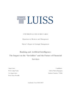 Rapagna, Gloria Maria (A.A. 2024/2025) Banking and artificial intelligence: the impact on the invisibles and the future of financial services. Tesi di Laurea in Corporate strategy, Luiss Guido Carli, relatore Luigi Nasta, pp. 81. [Master's Degree Thesis]