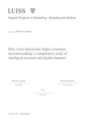 D'Antiga, Alessandra (A.A. 2024/2025) How voice interaction shapes consumer decision making: a comparative study of intelligent assistant and digital channels. Tesi di Laurea in Marketing metrics, Luiss Guido Carli, relatore Michele Costabile, pp. 82. [Master's Degree Thesis]