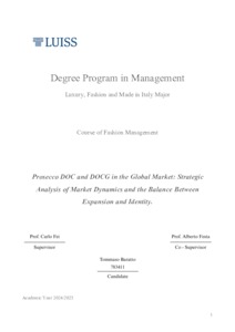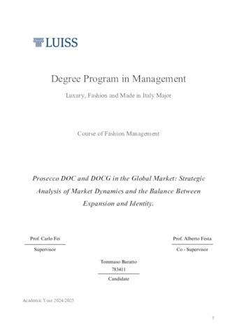 Baratto, Tommaso (A.A. 2024/2025) Prosecco DOC and DOCG in the global market: strategic analysis of market dynamics and the balance between expansion and identity. Tesi di Laurea in Fashion management, Luiss Guido Carli, relatore Carlo Fei, pp. 117. [Master's Degree Thesis]