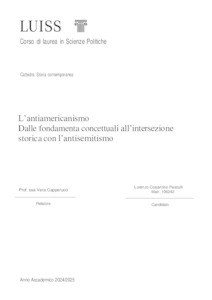 Pasciulli, Lorenzo Costantino (A.A. 2024/2025) L’antiamericanismo: dalle fondamenta concettuali all’intersezione storica con l’antisemitismo. Tesi di Laurea in Storia contemporanea, Luiss Guido Carli, relatore Vera Capperucci, pp. 65. [Bachelor's Degree Thesis]