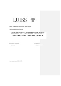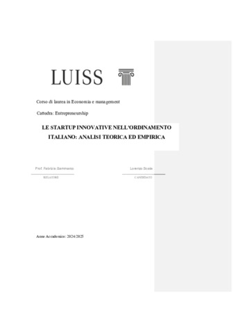 Scala, Lorenzo (A.A. 2024/2025) Le start-up innovative nell'ordinamento italiano: analisi teorica ed empirica. Tesi di Laurea in Entrepreneurship, Luiss Guido Carli, relatore Fabrizio Sammarco, pp. 73. [Bachelor's Degree Thesis]