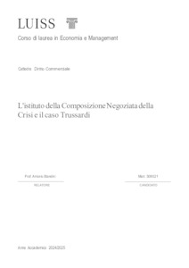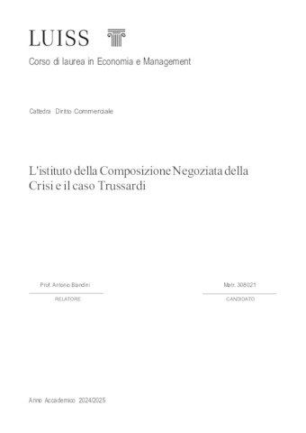 Bartolomei, Veronica (A.A. 2024/2025) L'istituto della composizione negoziata della crisi e il caso Trussardi. Tesi di Laurea in Diritto commerciale, Luiss Guido Carli, relatore Antonio Blandini, pp. 53. [Bachelor's Degree Thesis]