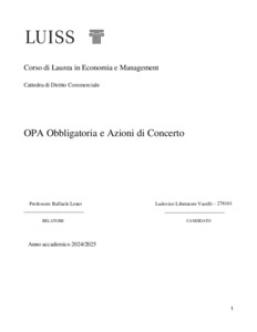 Liberatore Vaselli, Ludovico (A.A. 2024/2025) OPA obbligatoria e azioni di concerto. Tesi di Laurea in Diritto commerciale, Luiss Guido Carli, relatore Raffaele Lener, pp. 82. [Bachelor's Degree Thesis]