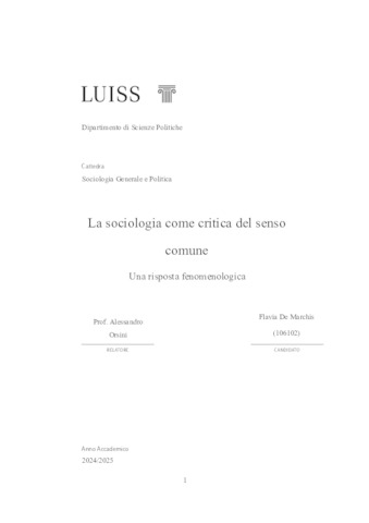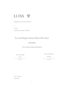 De Marchis, Flavia (A.A. 2024/2025) La sociologia come critica del senso comune: una risposta fenomenologica. Tesi di Laurea in Sociologia generale e politica, Luiss Guido Carli, relatore Alessandro Orsini, pp. 48. [Bachelor's Degree Thesis]